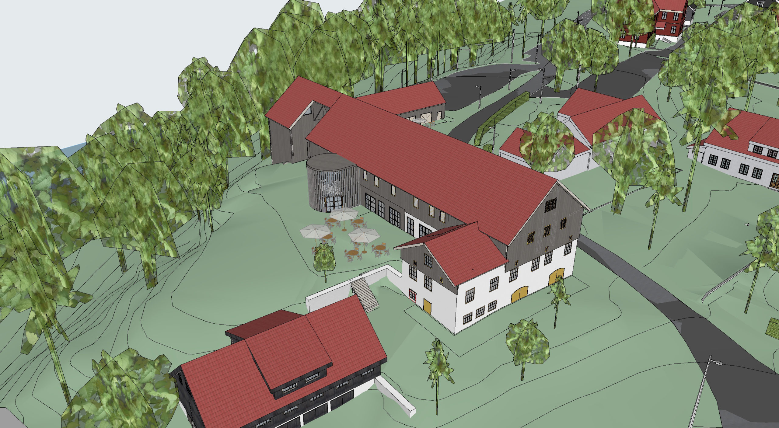 Låven hvor det tidligere har vært fjøsdrift skal bruksendres til restaurant og festlokale og er planlagt ferdigstilt i løpet av våren 2026.